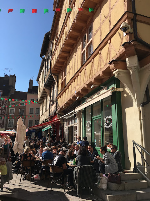 This was the church and its organ on the center square in this small town where we went for the farmer's market on that Sunday morning. The small town was Chalon-sur-Saône, on a beautiful river.